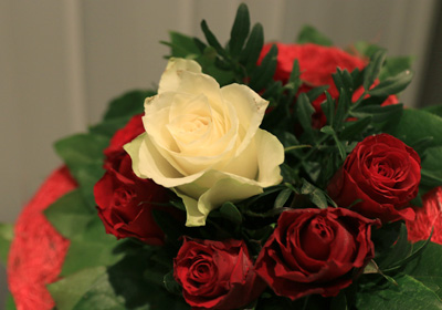 Der Strauß zum Preis von 19,99€ bestand aus acht roten Rosen und einer weißen Rose, genau wie im Produkttext des Shops angegeben. Der Stückpreis liegt damit bei etwa 2,20€. Dazu wurde der Strauß mit einer Herzmanschette und reichlich Blattgrün bestückt. Die Rosen hatten bei Lieferung einen Blütendurchmesser von etwa 4cm. Der Strauß hatte eine kompakte Größe und kam durch die Manschette gut zur Geltung. Mit der kostenlosen Grußkarte, einer Glasvase und dem Vino Rosanto Frizzante (0,2l) war das Gesamtpaket sehr günstig im Preis-Leistungsverhältnis.